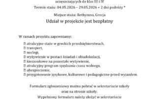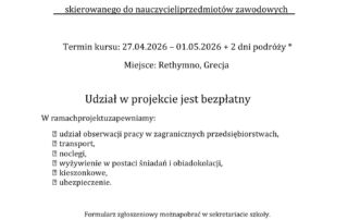 W ramach projektu na praktyki zawodowe do Rethymno na Krecie wyjedzie w maju’2026 łącznie 27 uczniów KCEZ-CKZIU klas 3 i 4 oraz na obserwację pracy – 4 nauczycieli zawodowców.