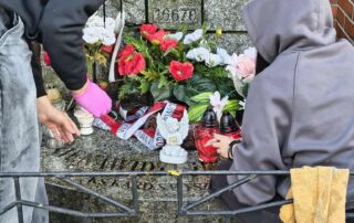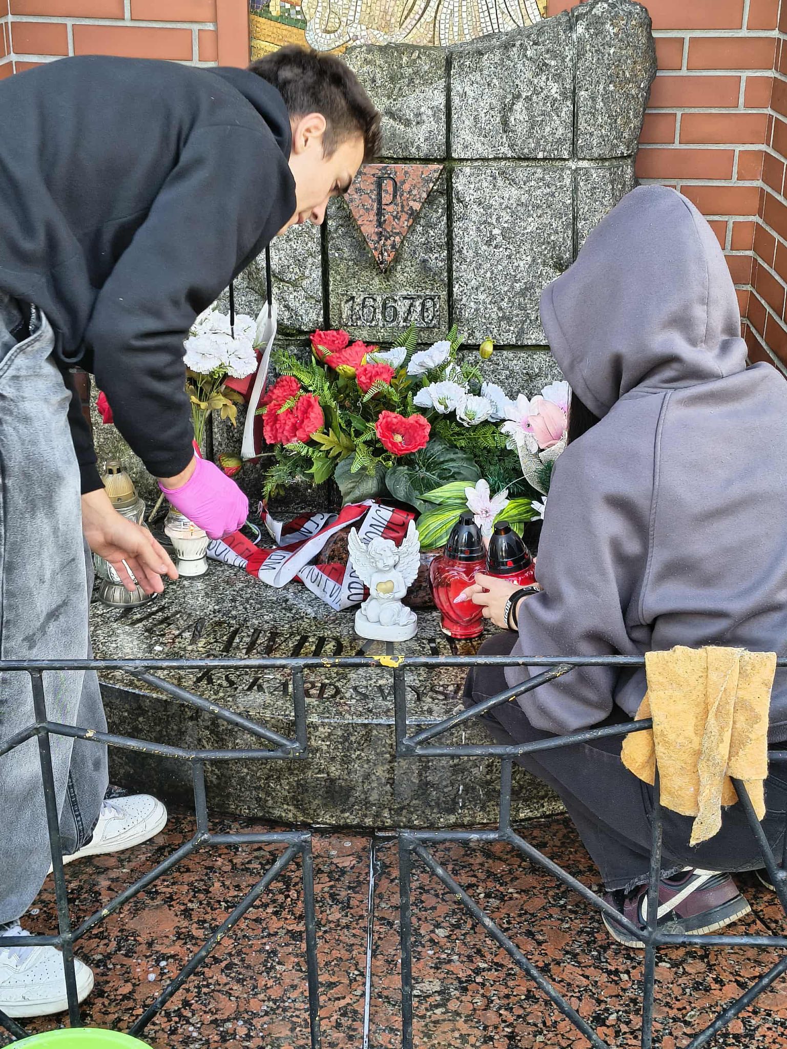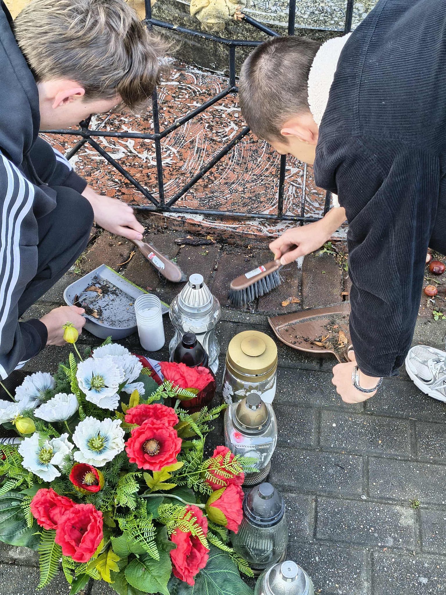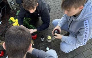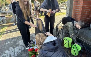 Po zakończeniu prac porządkowych zapaliliśmy znicze i złożyliśmy kwiaty, oddając hołd wszystkim, którzy zginęli w tamtych tragicznych czasach.
