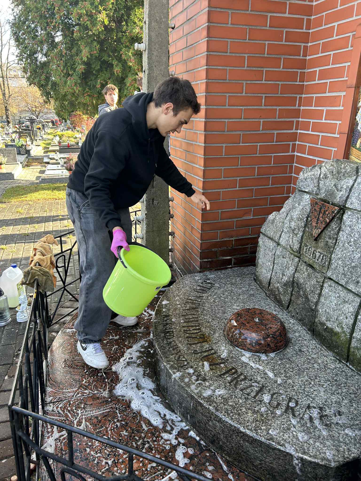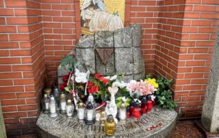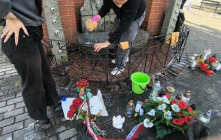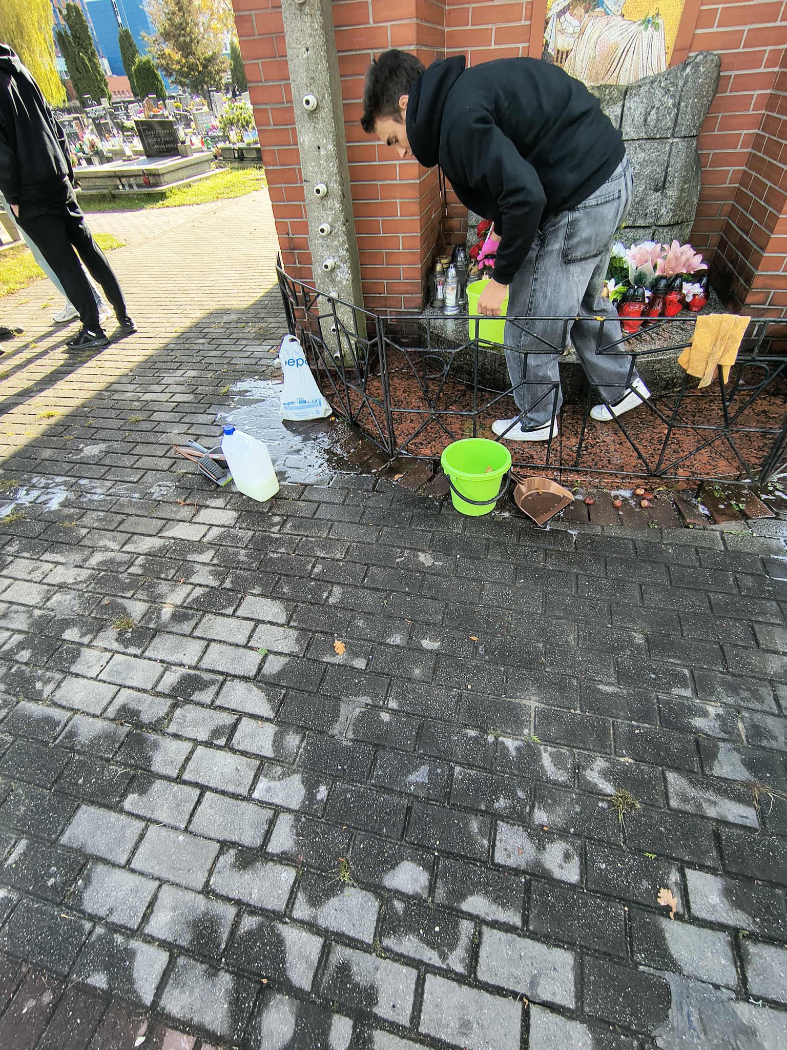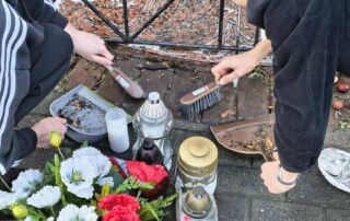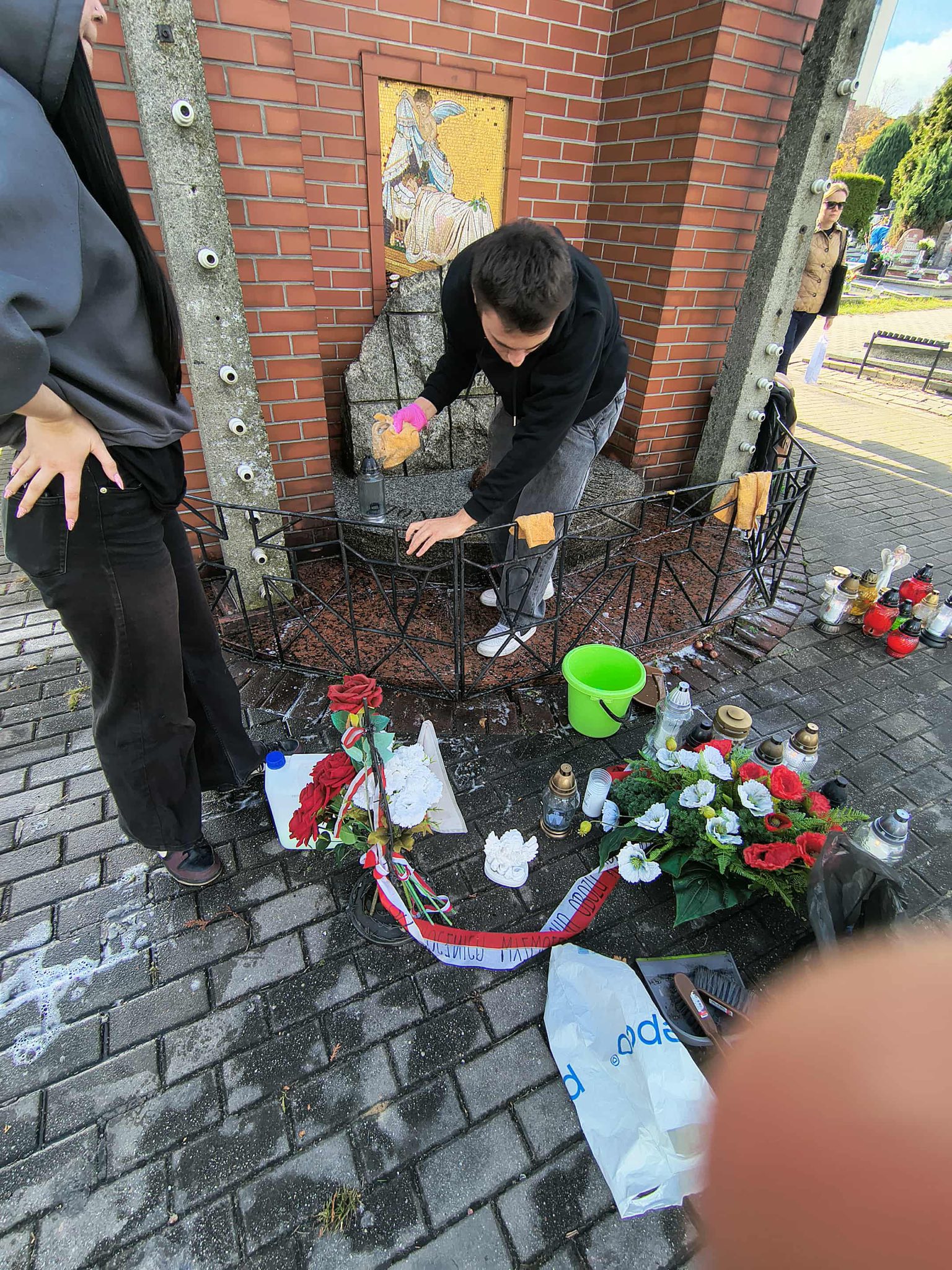 Po zakończeniu prac porządkowych zapaliliśmy znicze i złożyliśmy kwiaty, oddając hołd wszystkim, którzy zginęli w tamtych tragicznych czasach.